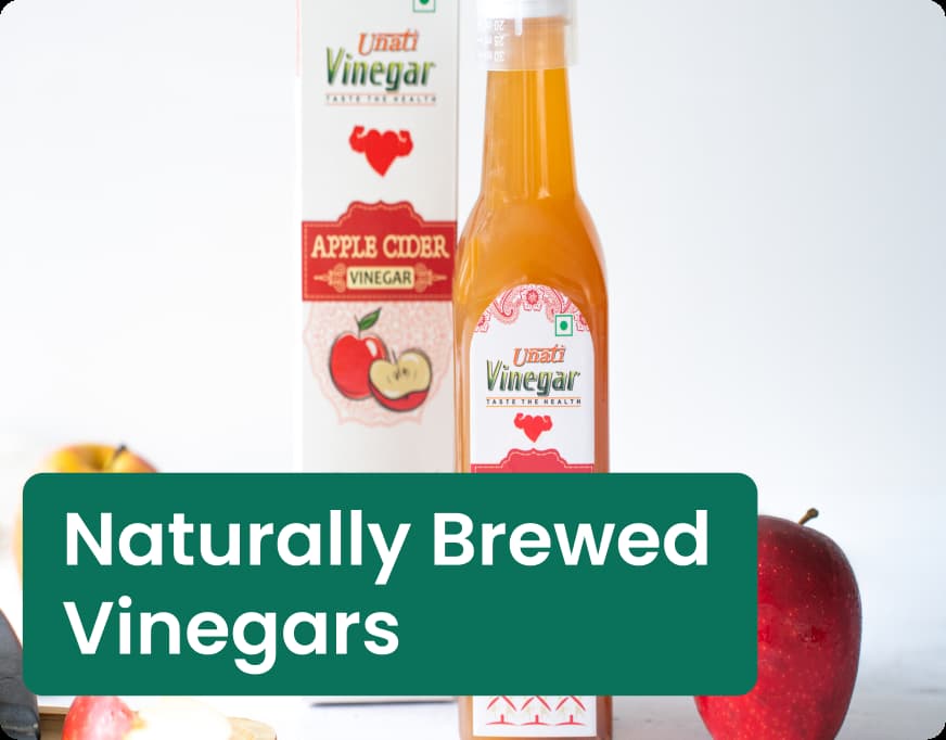 Brewing the best & scaled inhouse! Unati stands tall with pride as No.1 entity to manufacture naturally brewed vinegars across the nation. The technology used is indigenous. Unati brews vinegars for top shot players of the nation : Dabur, Apollo etc. Made through standardised fermentation processes, these vinegars are rich in probiotics and ideal for both cooking and wellness.
